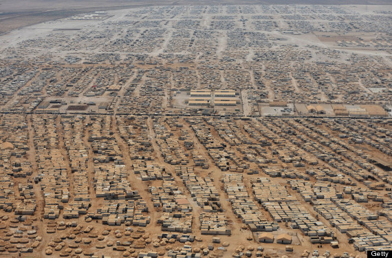 An aerial view shows the Zaatari refugee camp on July 18, 2013 near the Jordanian city of Mafraq, some 8 kilometers from the Jordanian-Syrian border. (MANDEL NGAN/AFP/Getty Images)